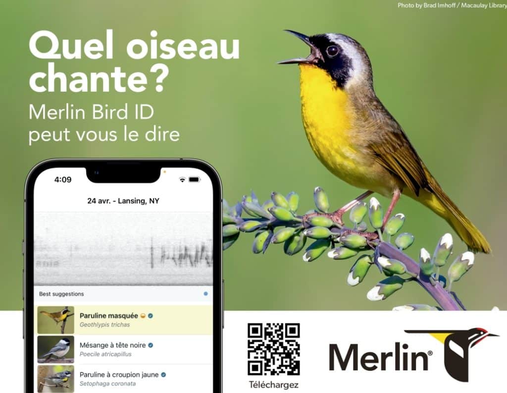Une application iOS et Androïd gratuite développée par le laboratoire d’ornithologie de l’Université de Cornell (États-Unis)